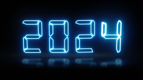 This is a 1080p HD motion graphic video celebrating the year 2024 on a dark black backdrop with neon numbers in digital data computer style. This is perfect for celebrating the '24 new year, New Year’s Eve parties on December 31st or January 1st, the future, holidays, New Year’s resolutions, new year forecast, etc.